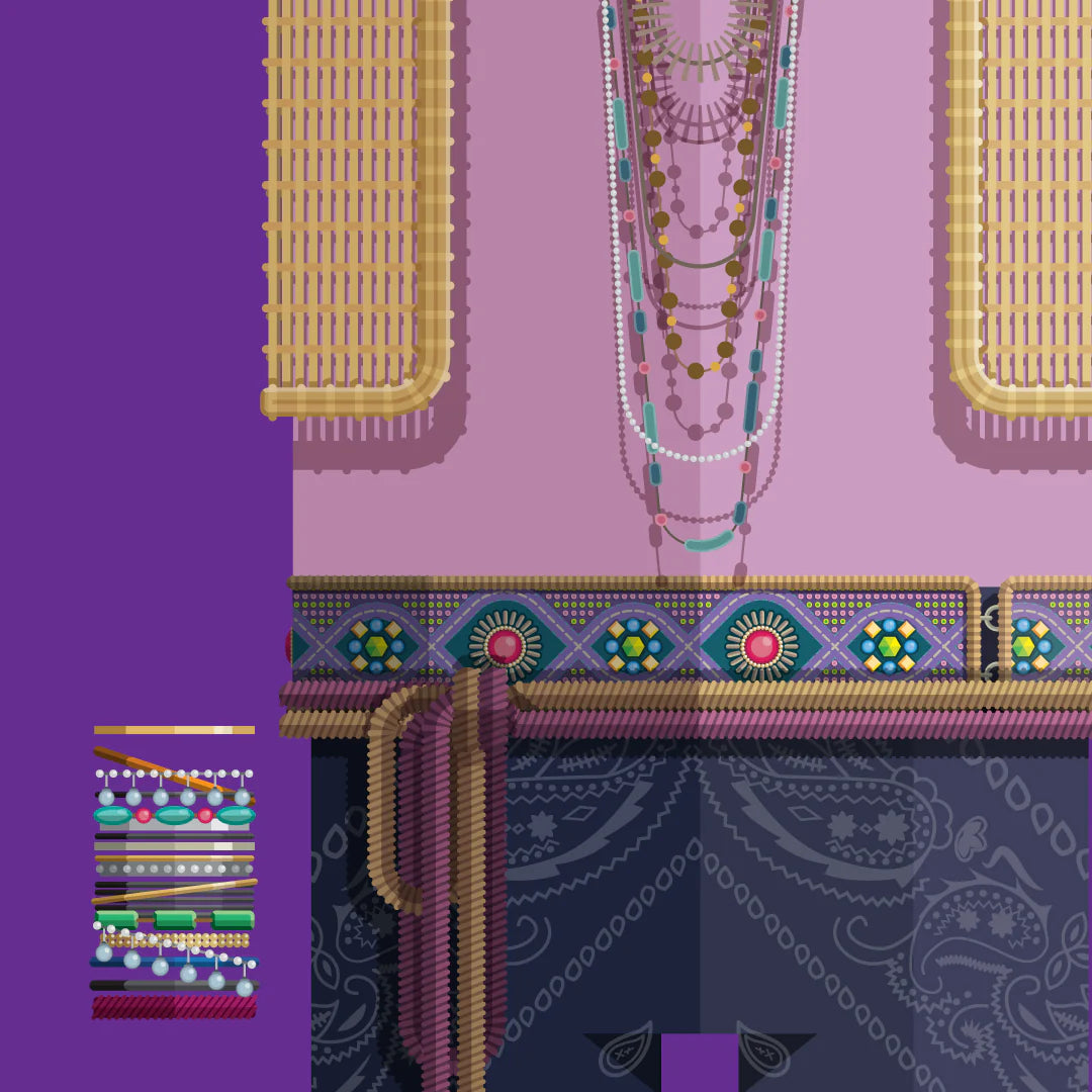 Janis Joplin, icône de la musique des années 60, était célèbre pour son sens unique de la mode, arborant des vêtements vibrants, amples et anticonformistes, qui reflétaient parfaitement la contre-culture de l’époque. Cette œuvre met en valeur son esprit libre et sa présence charismatique sur scène.