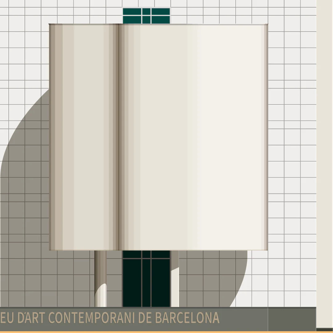 Step into the heart of Barcelona’s contemporary art scene with this exclusive MACBA poster — a tribute to Richard Meier’s iconic architectural masterpiece.