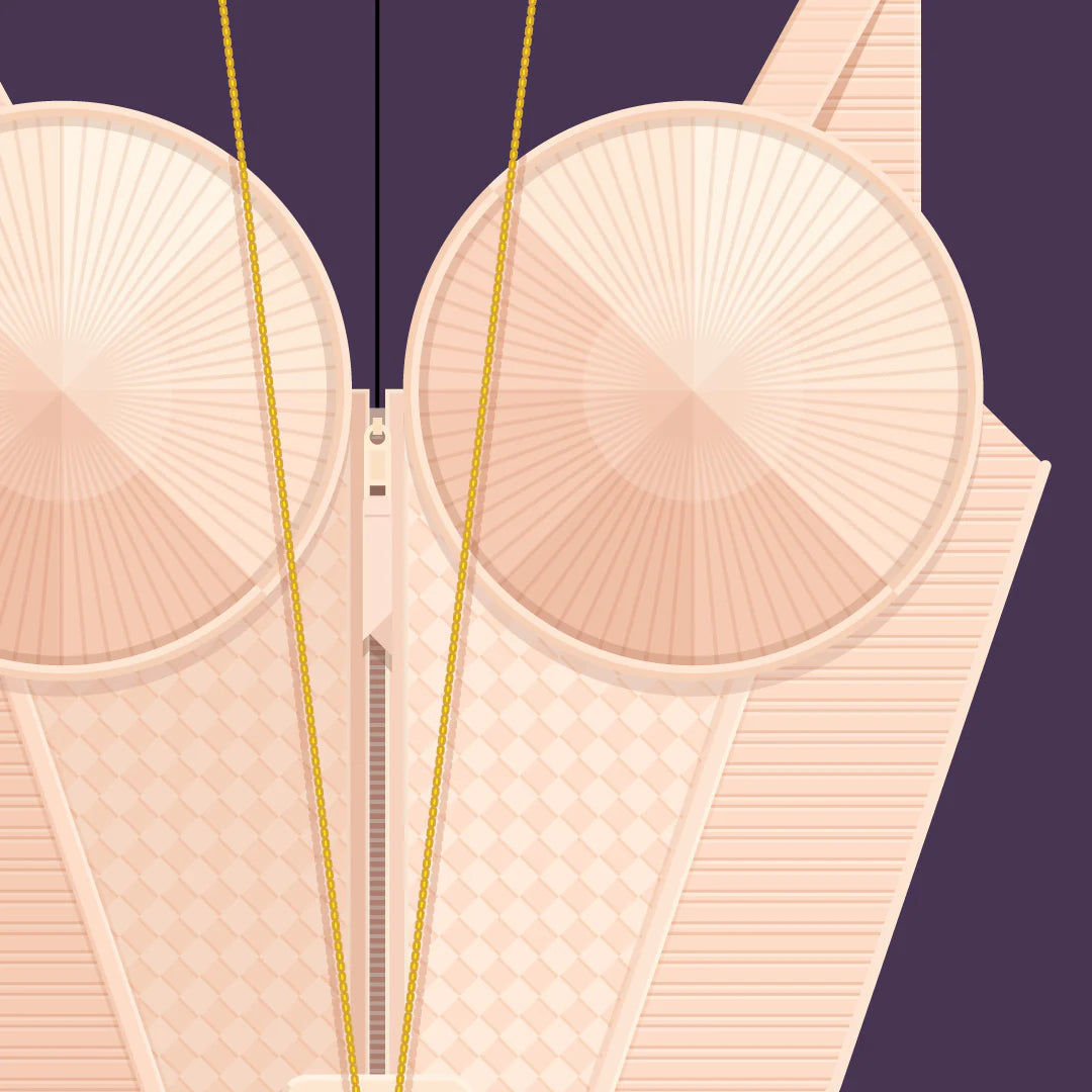 Inspiré du soutien-gorge conique emblématique de Madonna, créé par Jean Paul Gaultier, ce poster célèbre un moment révolutionnaire de l'histoire de la mode et de la musique.
